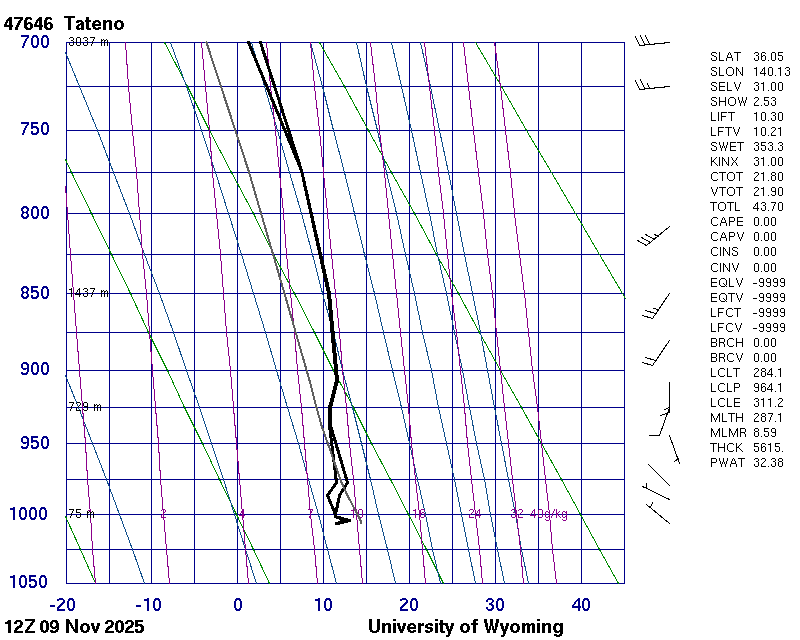 Precipitable water [mm] for entire sounding: 32.38