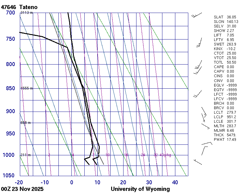 Precipitable water [mm] for entire sounding: 17.49