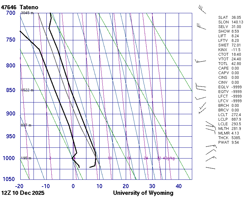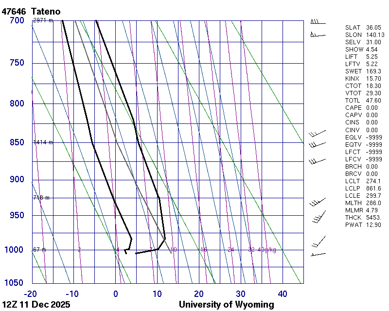 Precipitable water [mm] for entire sounding: 12.90
