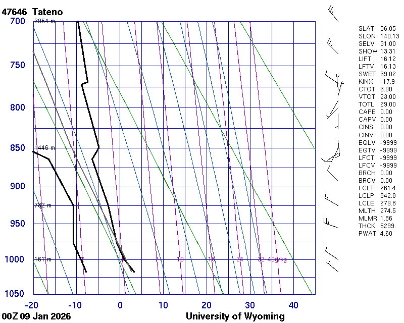 Precipitable water [mm] for entire sounding: 7.11