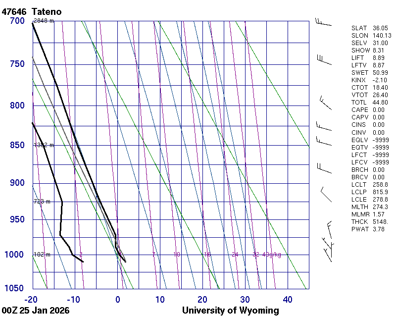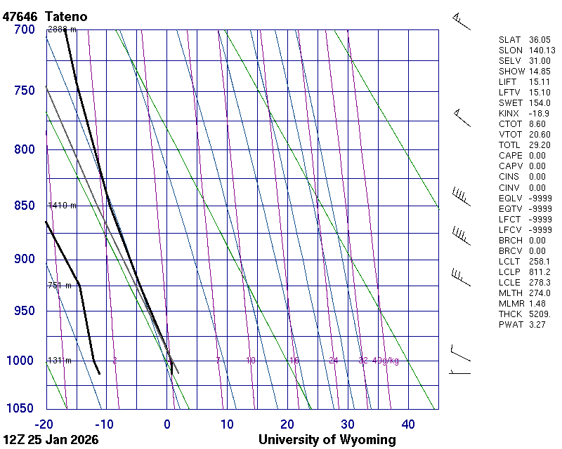 Precipitable water [mm] for entire sounding: 3.27