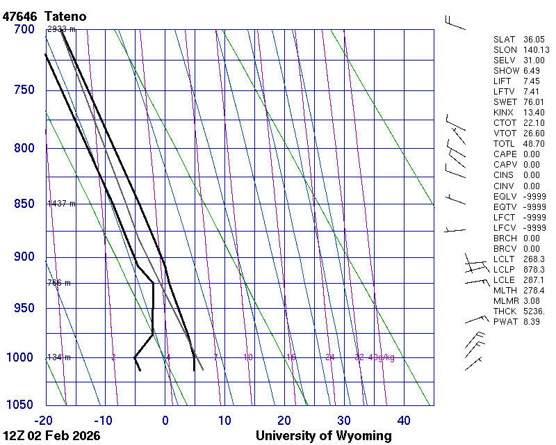 Precipitable water [mm] for entire sounding: 8.39