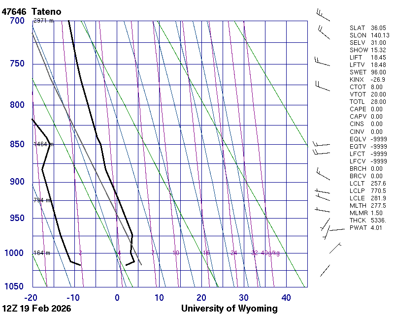 Precipitable water [mm] for entire sounding: 4.01