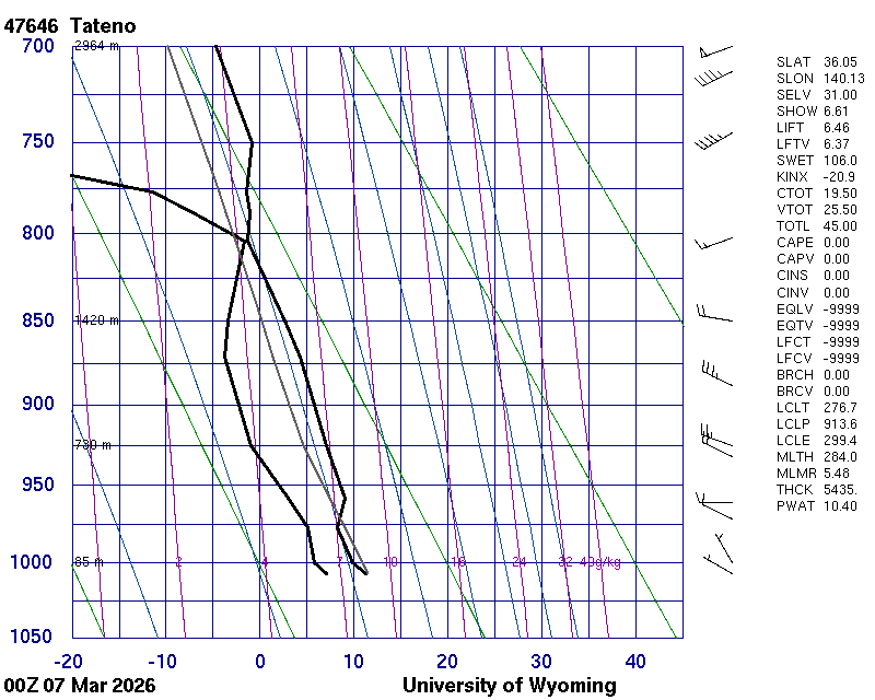 Precipitable water [mm] for entire sounding: 10.40