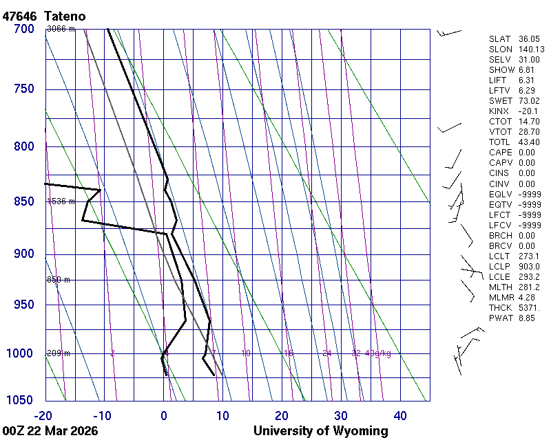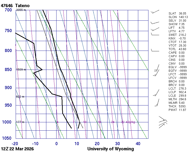 Precipitable water [mm] for entire sounding: 11.87