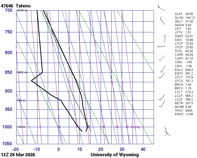 Precipitable water [mm] for entire sounding: 13.56