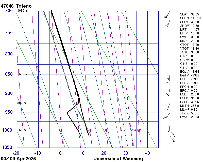 Precipitable water [mm] for entire sounding: 26.13