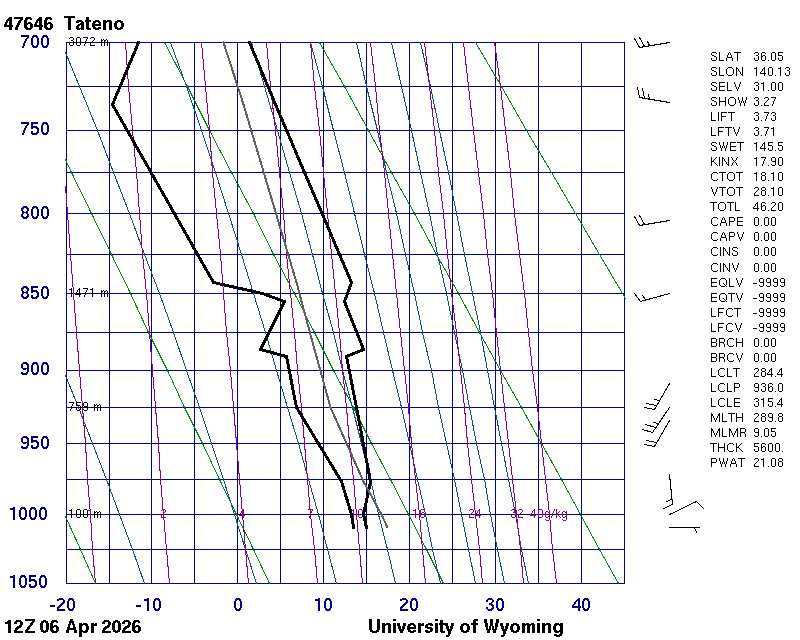 Precipitable water [mm] for entire sounding: 16.97