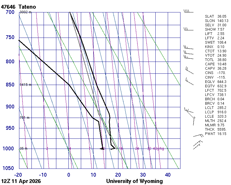 Precipitable water [mm] for entire sounding: 15.19