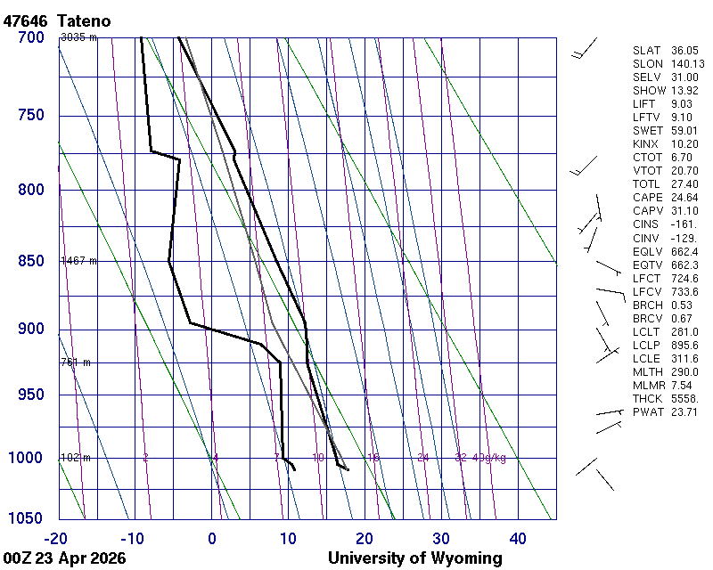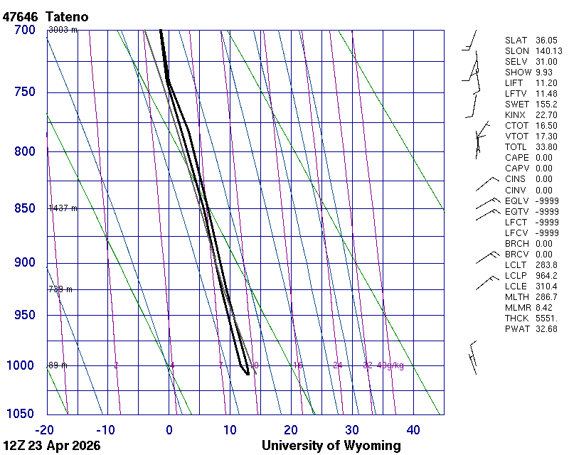Precipitable water [mm] for entire sounding: 10.37