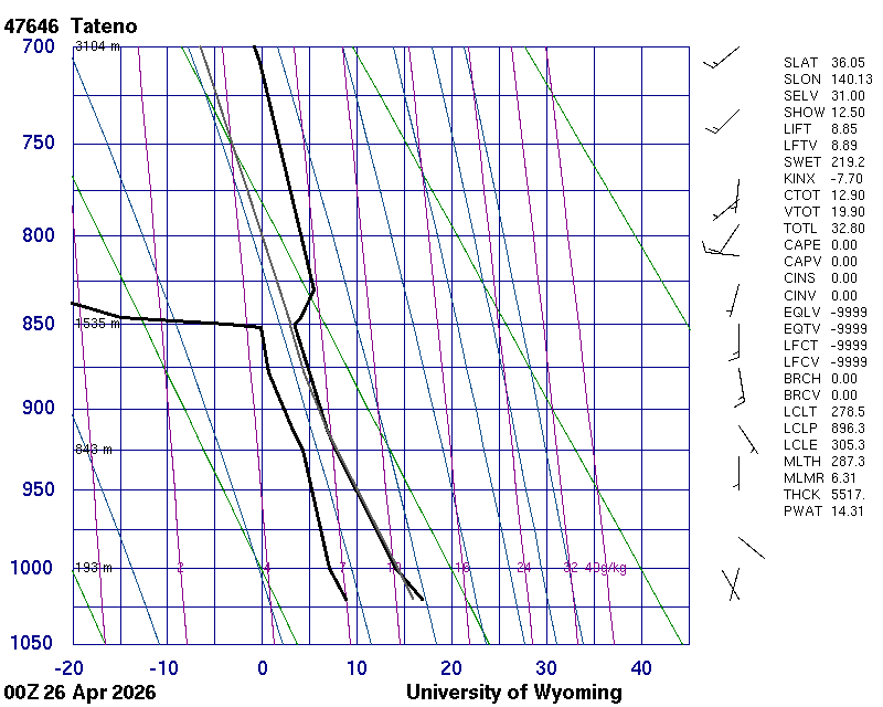 Precipitable water [mm] for entire sounding: 11.59