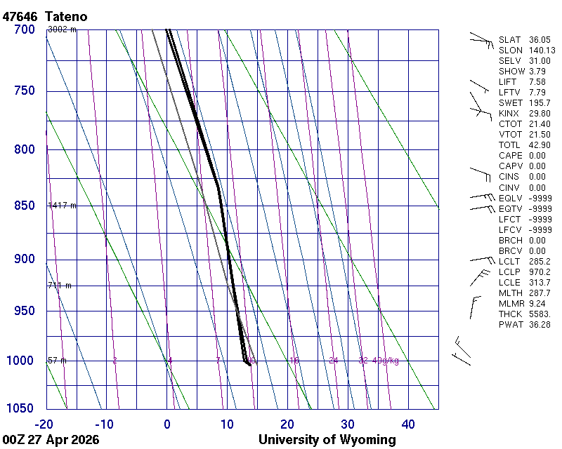 Precipitable water [mm] for entire sounding: 18.89