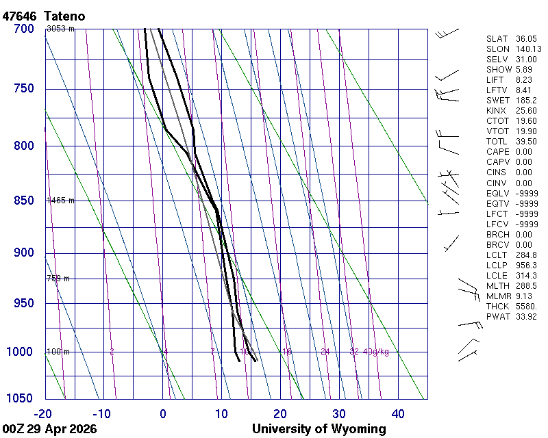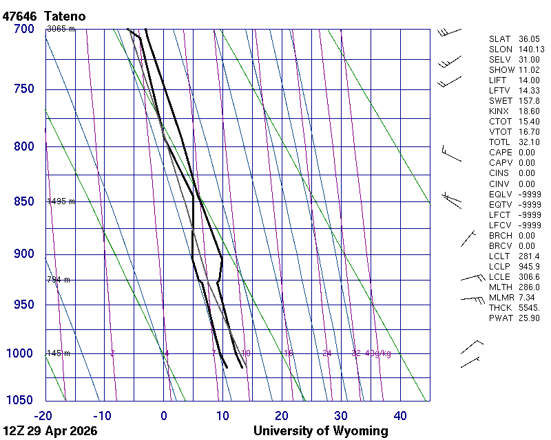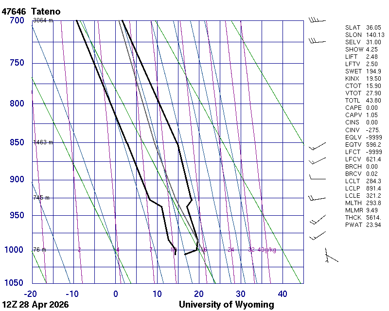PRES HGHT TEMP DWPT RELH MIXR DRCT SKNT THTA THTE THTV