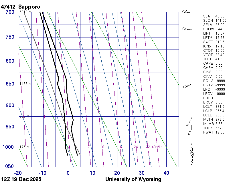 Precipitable water [mm] for entire sounding: 12.56