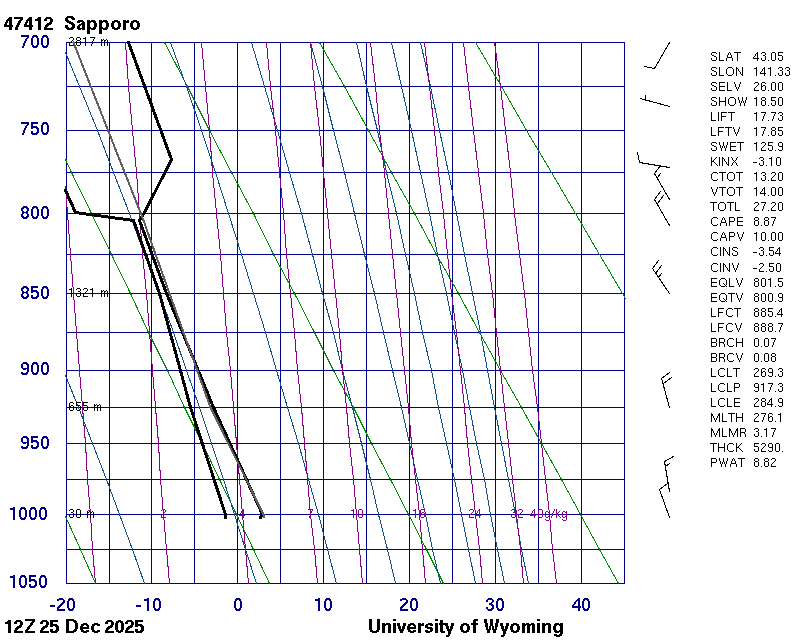 Precipitable water [mm] for entire sounding: 8.82