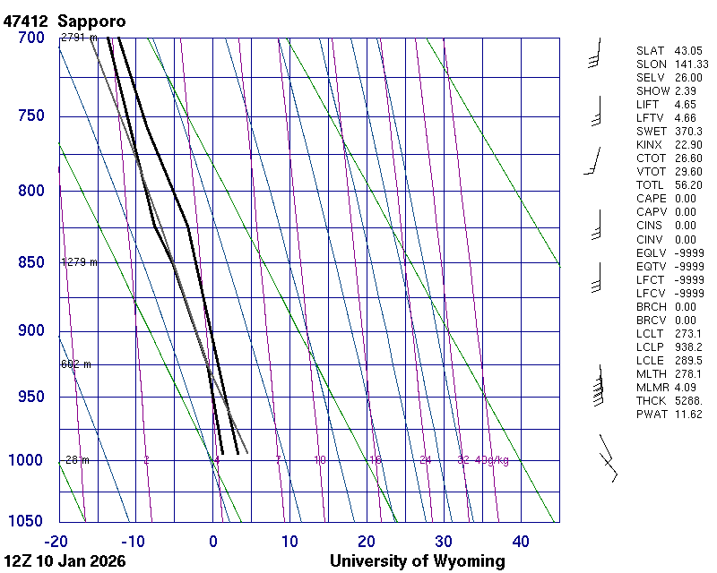 Precipitable water [mm] for entire sounding: 8.56