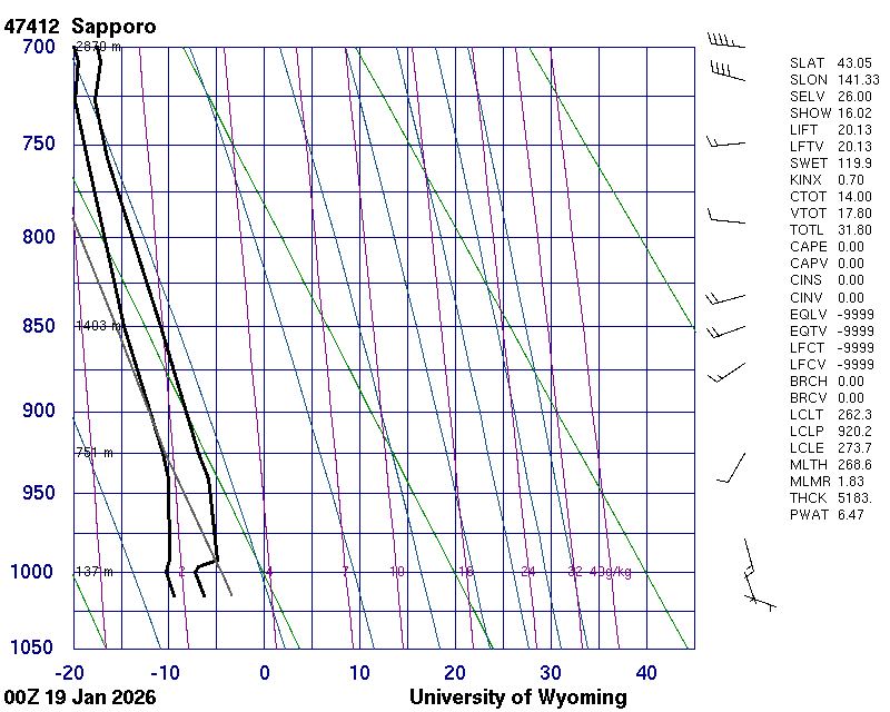Precipitable water [mm] for entire sounding: 6.47