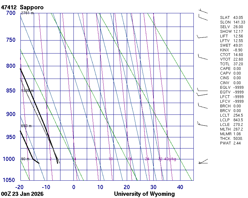 Precipitable water [mm] for entire sounding: 2.44