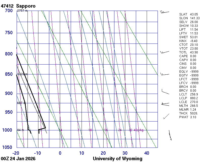 Precipitable water [mm] for entire sounding: 3.10