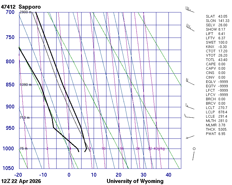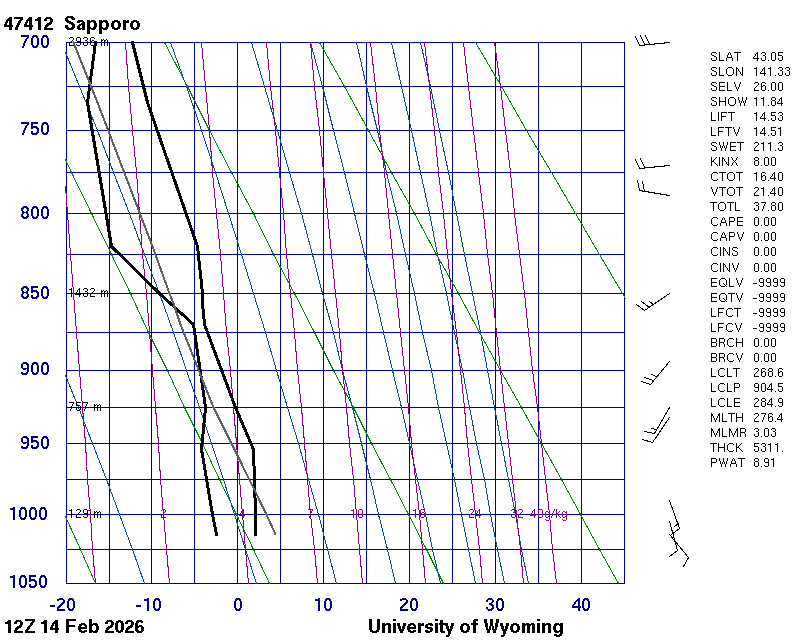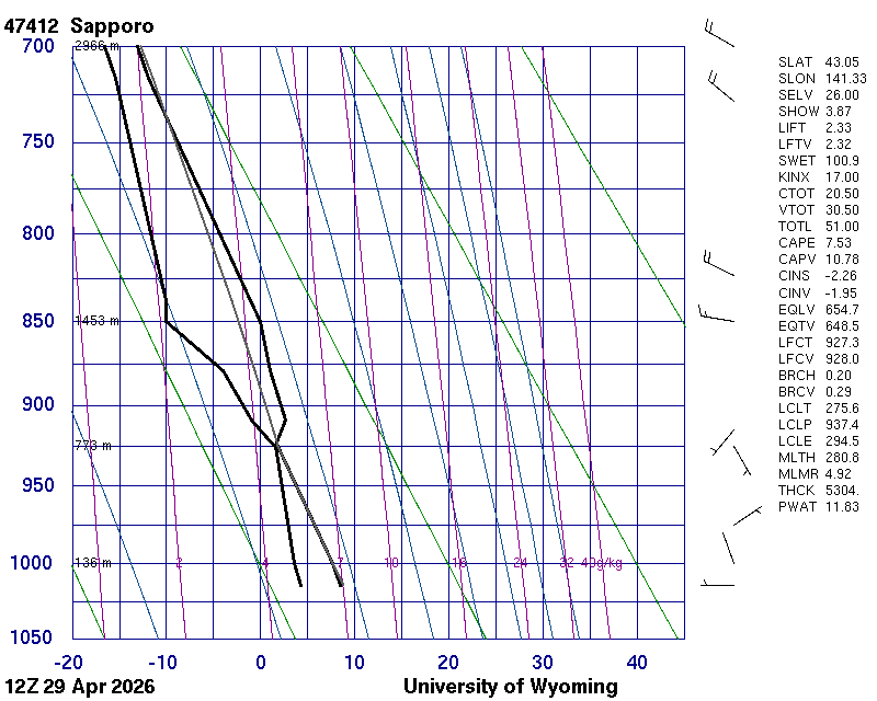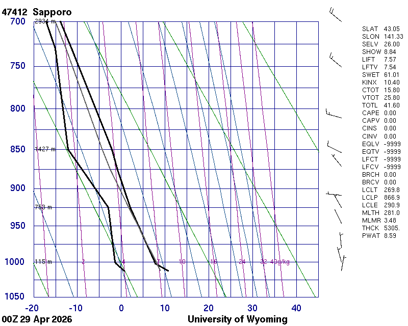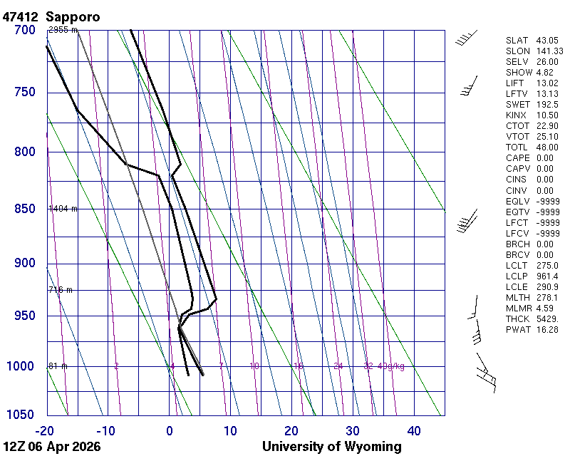 PRES HGHT TEMP DWPT RELH MIXR DRCT SKNT THTA THTE THTV