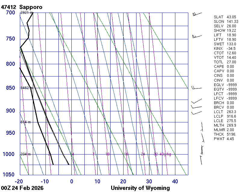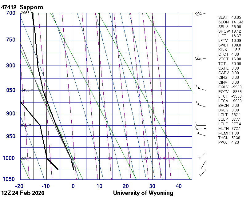 Precipitable water [mm] for entire sounding: 4.23