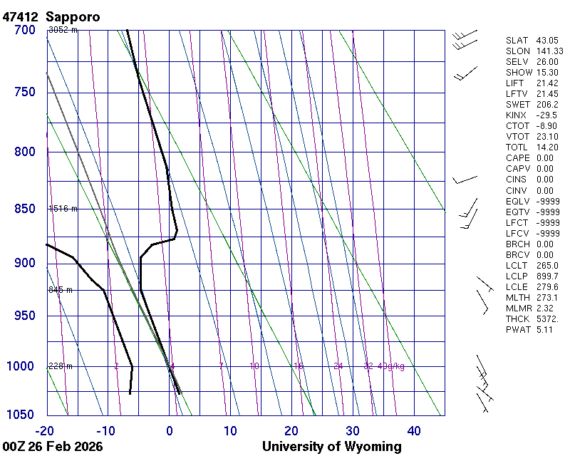 Precipitable water [mm] for entire sounding: 6.45