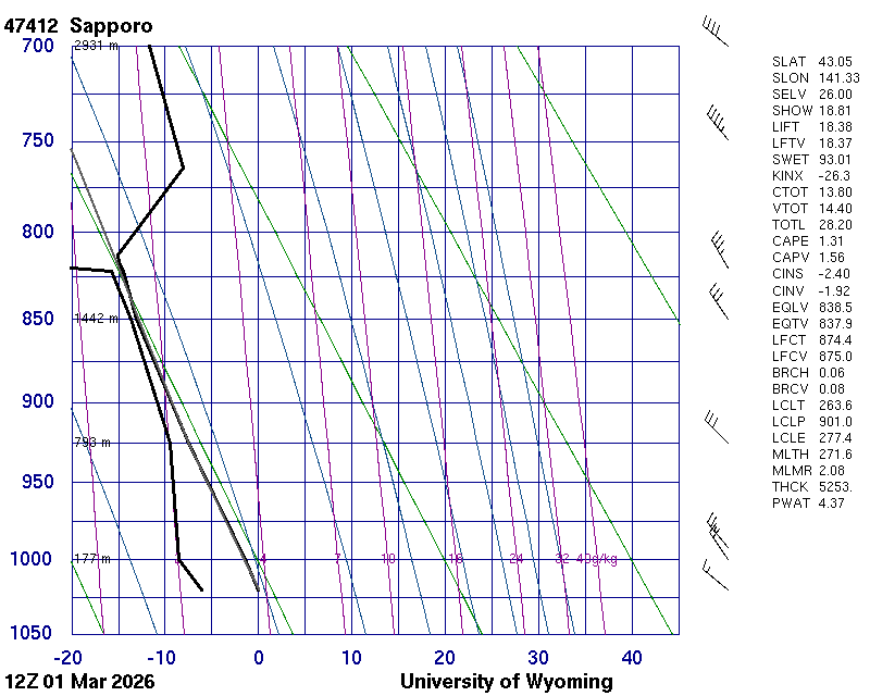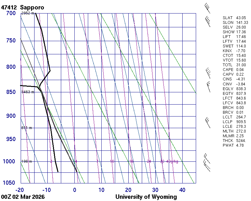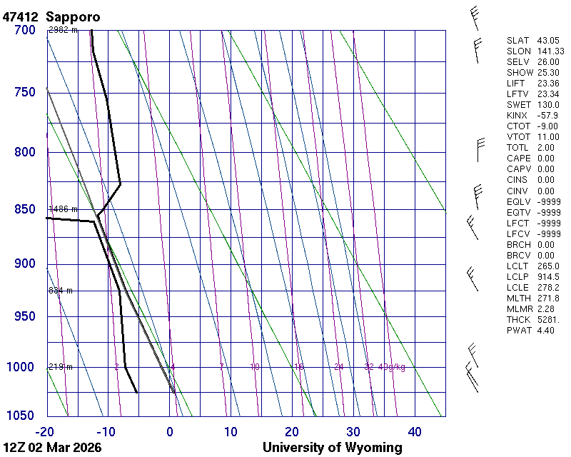 Precipitable water [mm] for entire sounding: 4.40