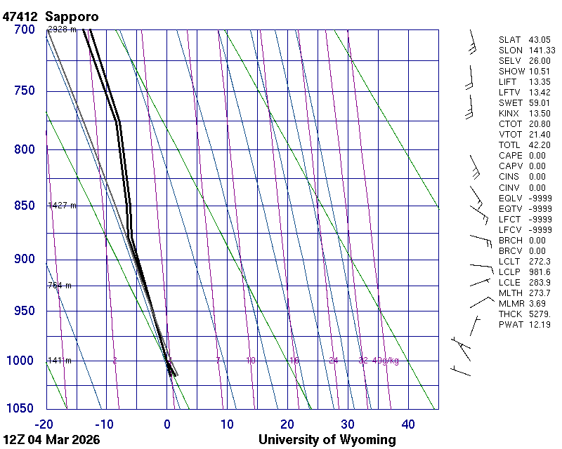 Precipitable water [mm] for entire sounding: 12.19