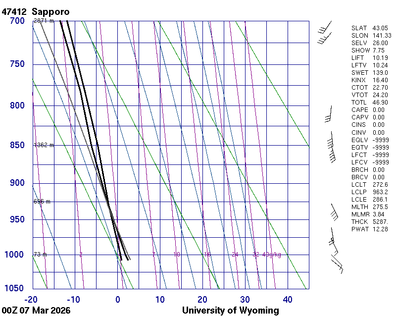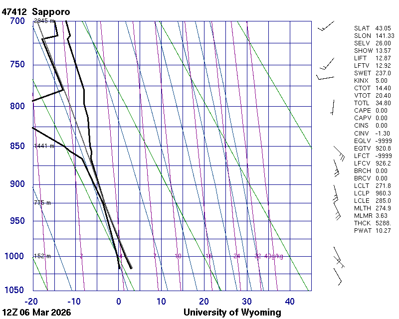 Precipitable water [mm] for entire sounding: 12.28