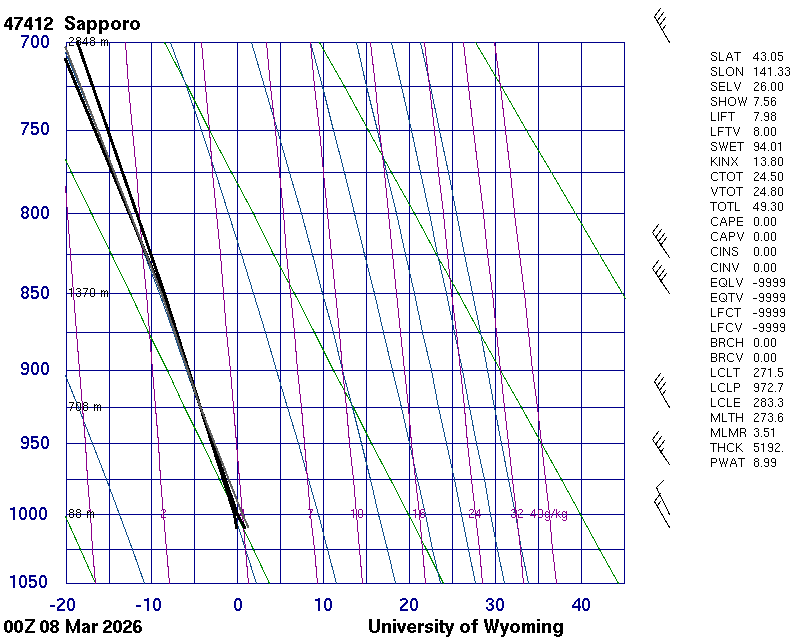 Precipitable water [mm] for entire sounding: 8.99