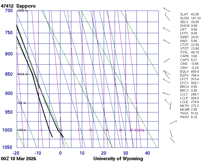 Precipitable water [mm] for entire sounding: 6.18