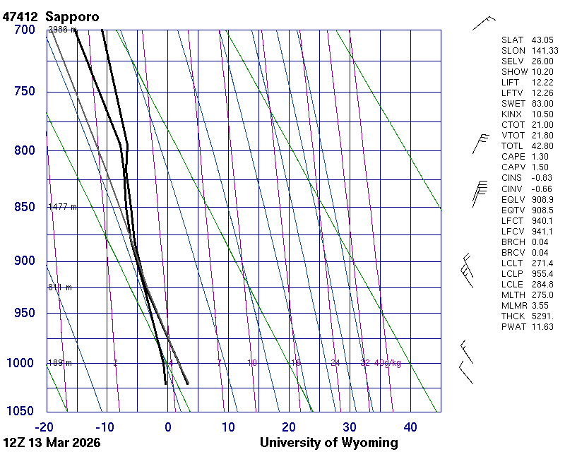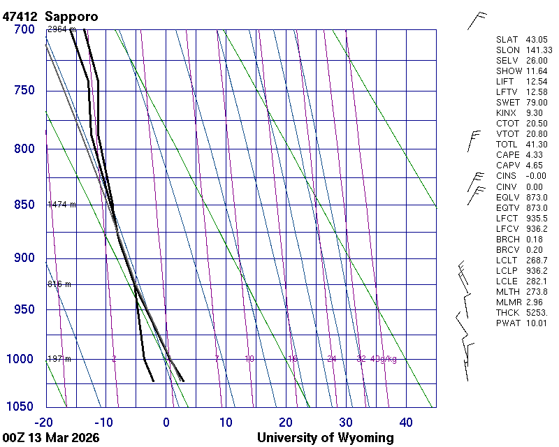 Precipitable water [mm] for entire sounding: 9.22