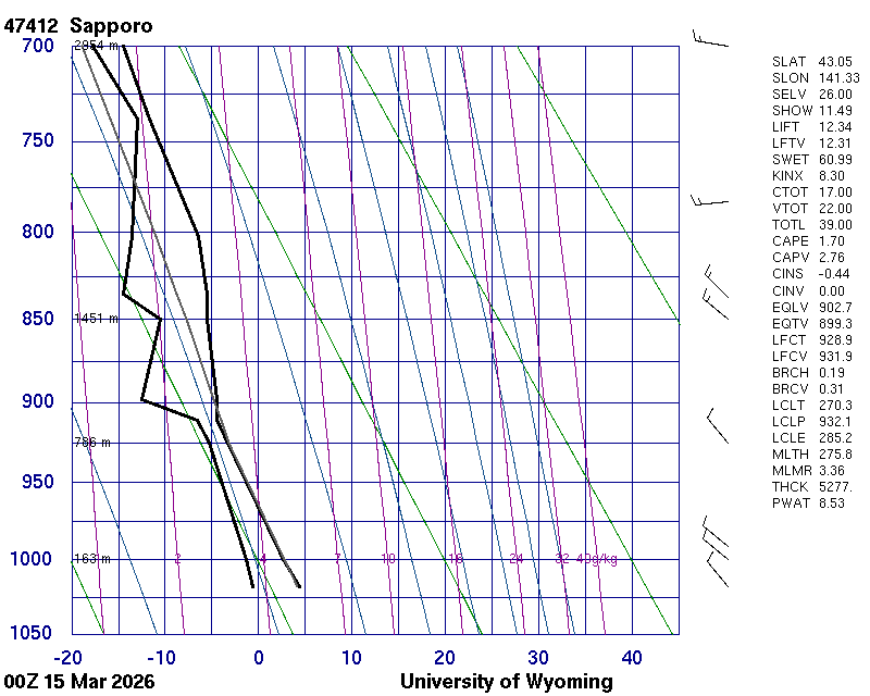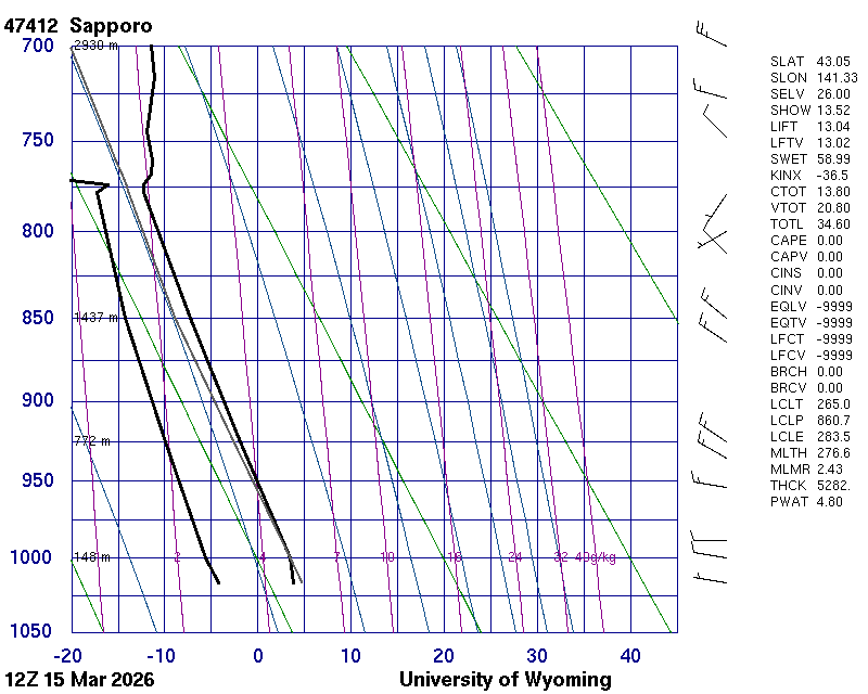 Precipitable water [mm] for entire sounding: 4.80