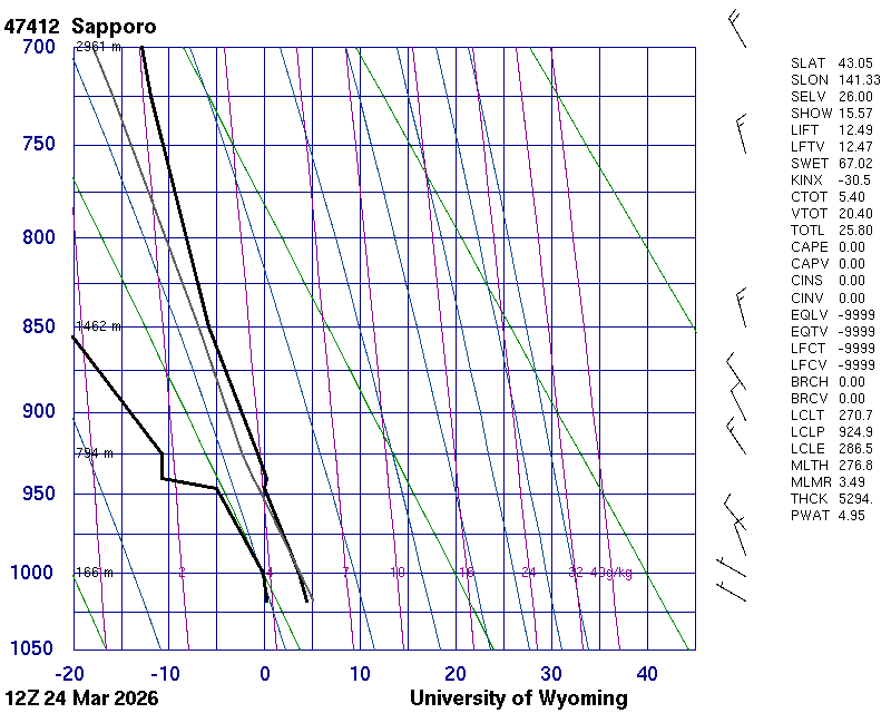 Precipitable water [mm] for entire sounding: 4.95