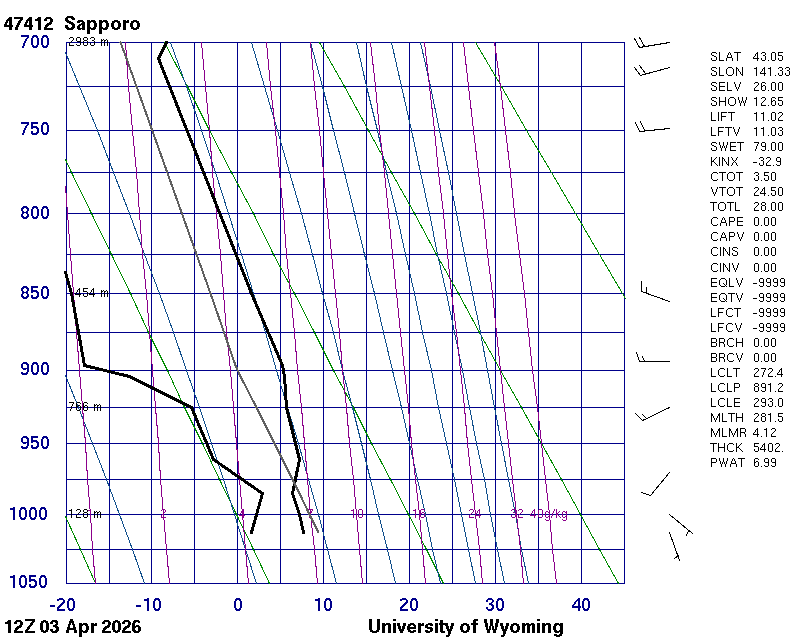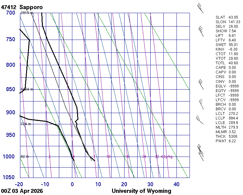 Precipitable water [mm] for entire sounding: 6.99