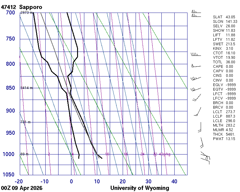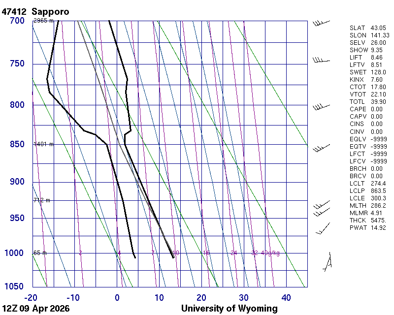 Precipitable water [mm] for entire sounding: 14.92
