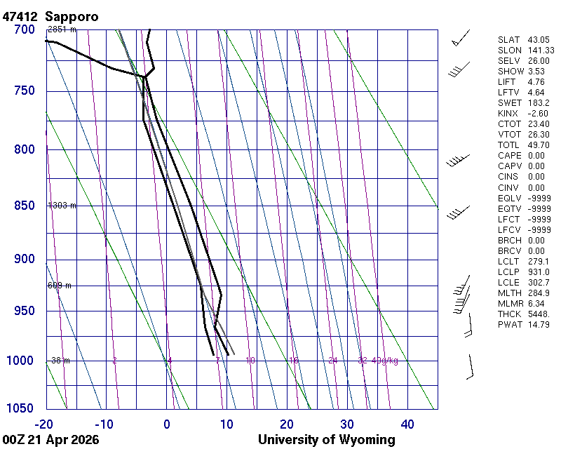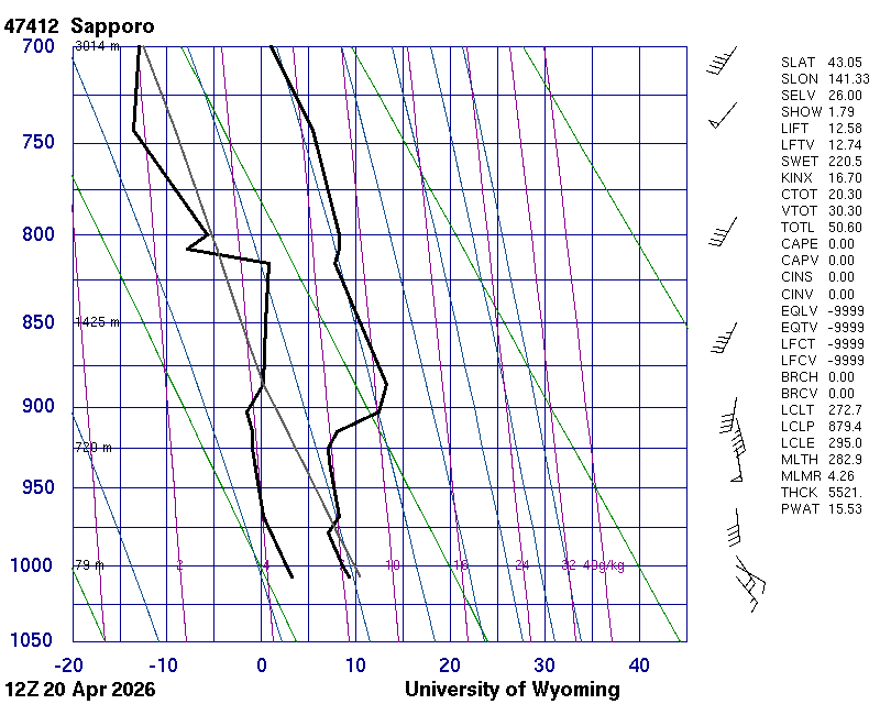 Precipitable water [mm] for entire sounding: 11.89