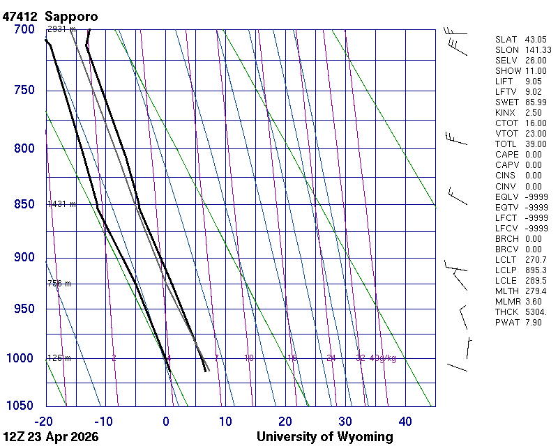 Precipitable water [mm] for entire sounding: 13.66