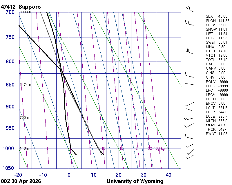 Precipitable water [mm] for entire sounding: 9.85