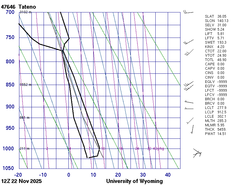 Precipitable water [mm] for entire sounding: 14.51