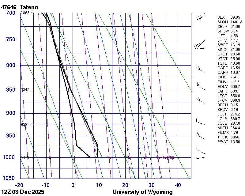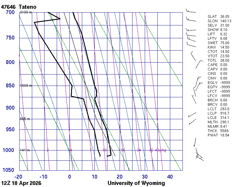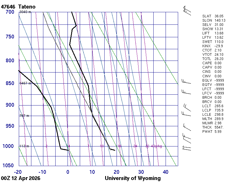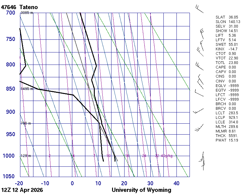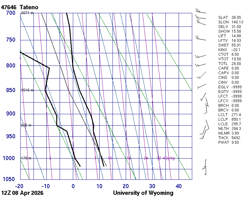 PRES HGHT TEMP DWPT RELH MIXR DRCT SKNT THTA THTE THTV