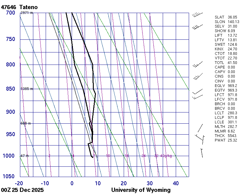 Precipitable water [mm] for entire sounding: 25.32