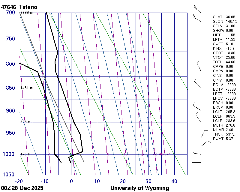 Precipitable water [mm] for entire sounding: 5.82