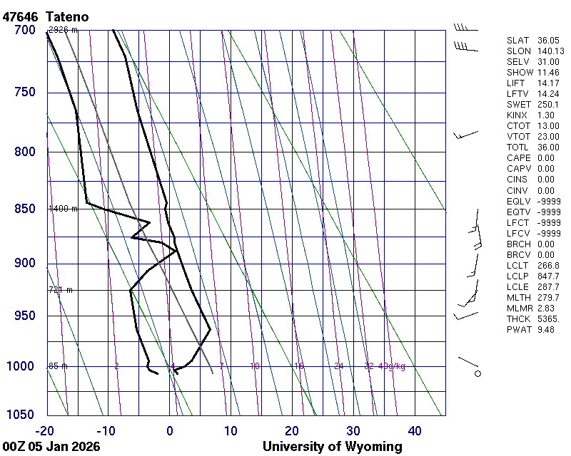 Precipitable water [mm] for entire sounding: 9.48