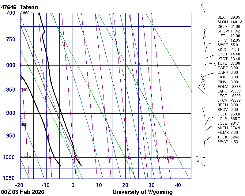 Precipitable water [mm] for entire sounding: 4.73