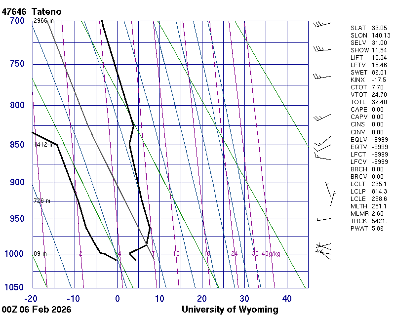 Precipitable water [mm] for entire sounding: 5.86