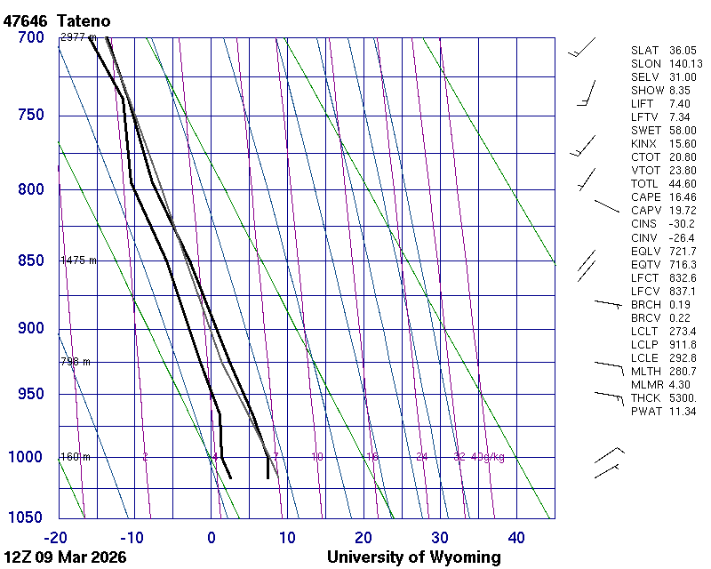 Precipitable water [mm] for entire sounding: 11.34