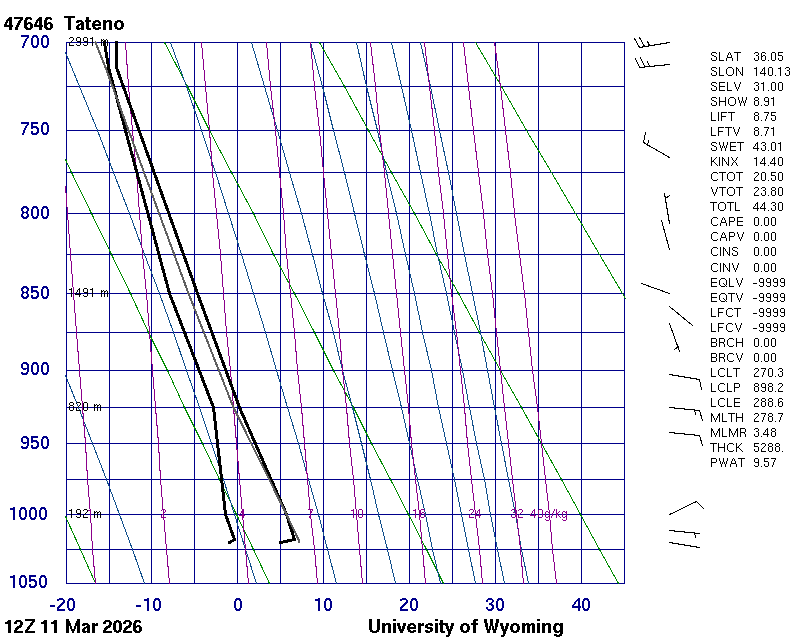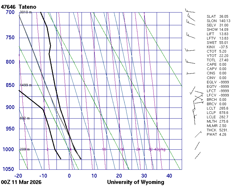 Precipitable water [mm] for entire sounding: 4.26