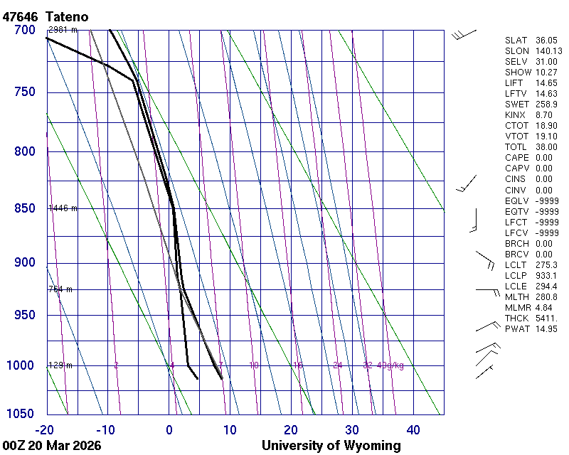 Precipitable water [mm] for entire sounding: 14.95