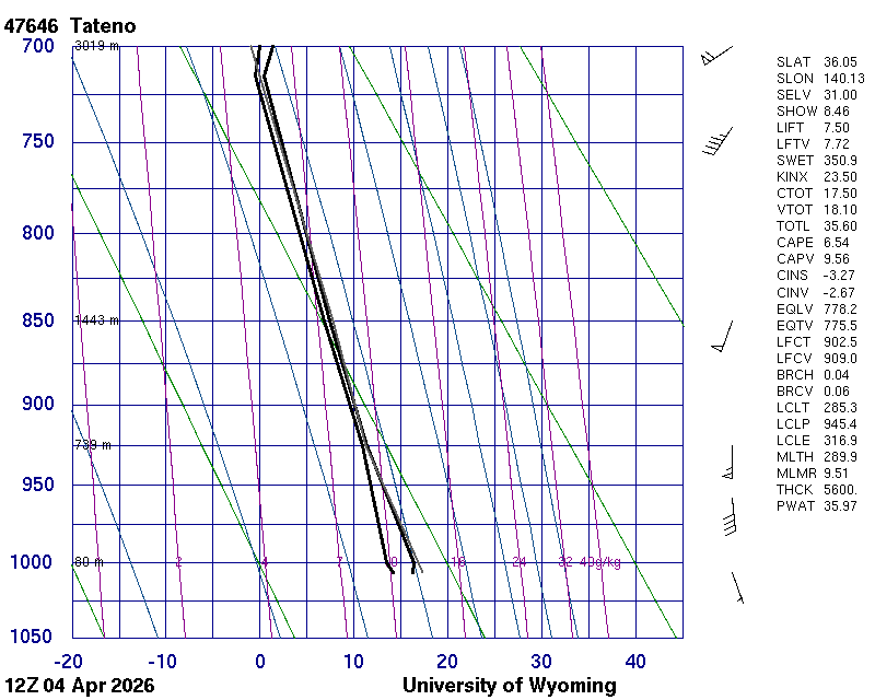 Precipitable water [mm] for entire sounding: 35.97
